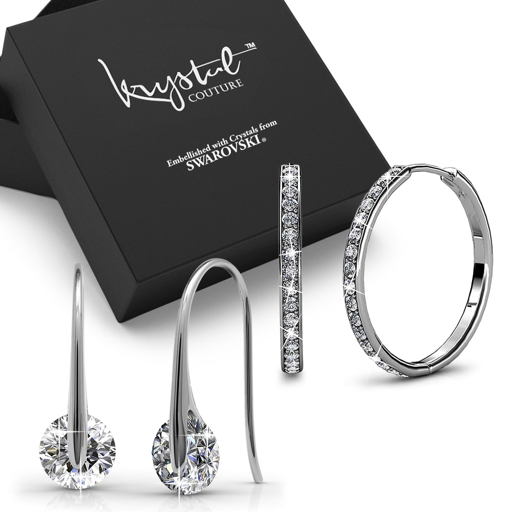 Boxed 2 Pairs of Earrings Set Embellished with SWAROVSKI® Crystals