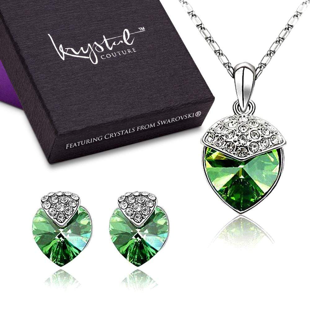Boxed Evergreen Heart Necklace and Earrings Set Embellished with SWAROVSKI® Crystals