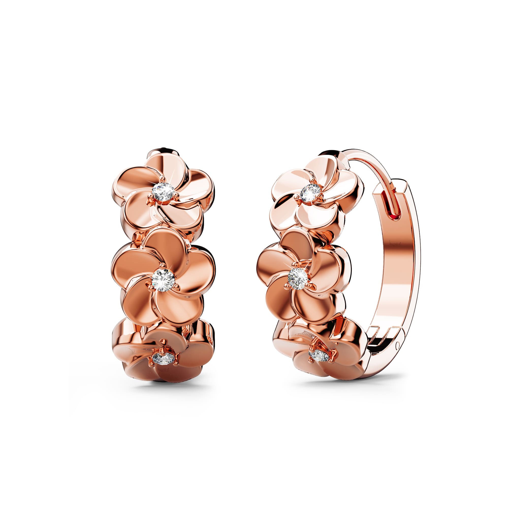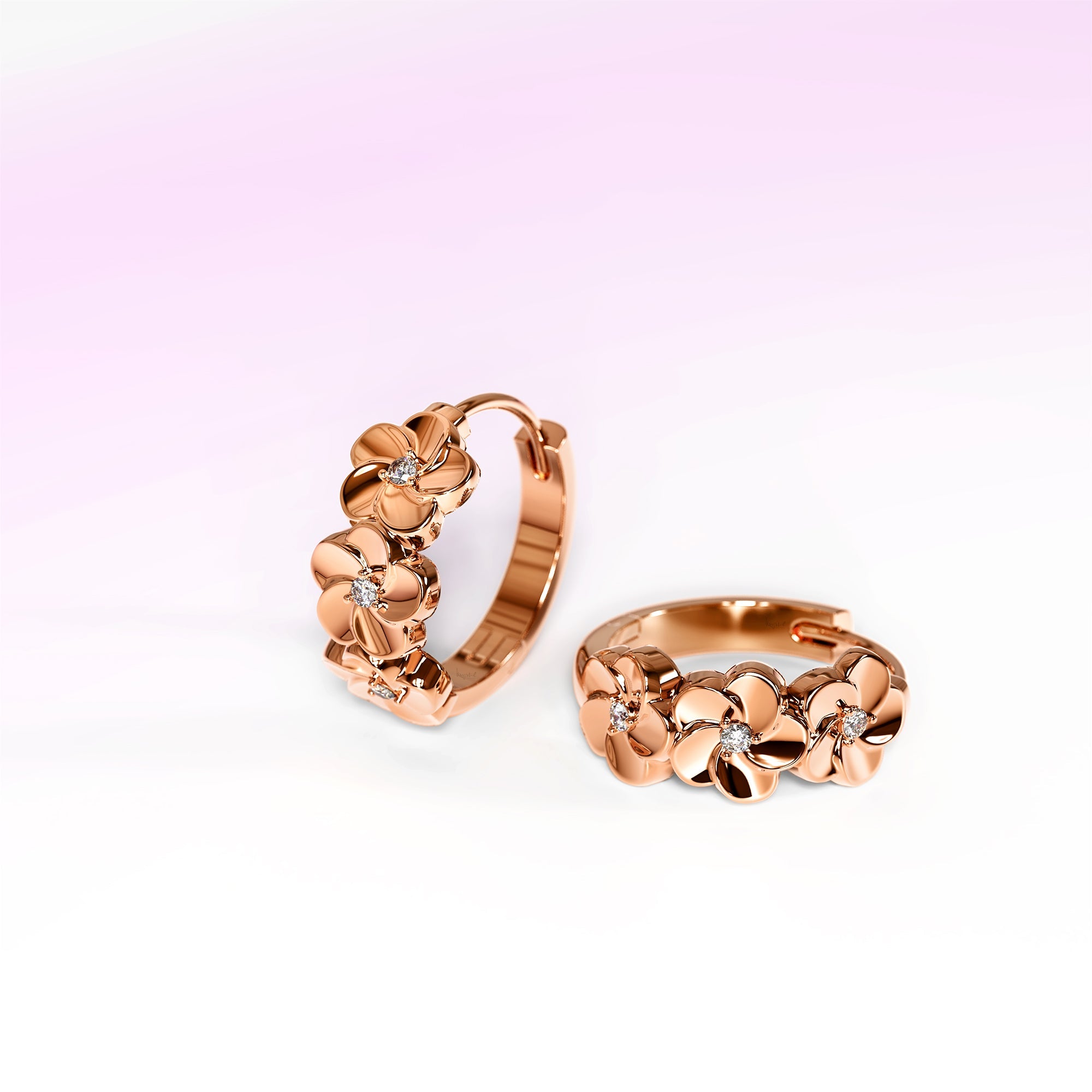 Floral Trio Huggie Earrings Embellished in SWAROVSKI® Crystals in Rose Gold