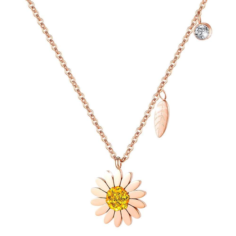 Fresh Sunflower Necklace in Rose Gold Layered Steel Jewellery