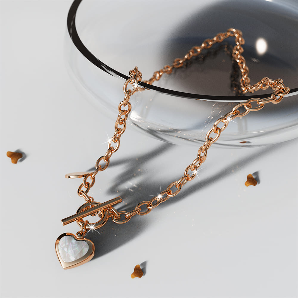 Gloria Chunky Heart Toggle Closure Necklace in Rose Gold