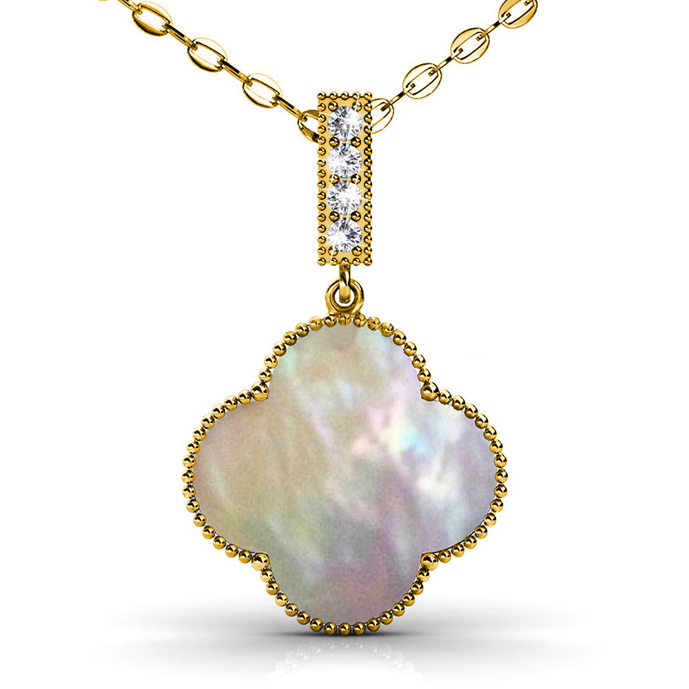 Flaunt these lovely necklace featuring clover design and Embellished with crystals from SWAROVSKI® This lovely pair is made of high glossed 18K Gold plating, extra coated for an enduring shine.
