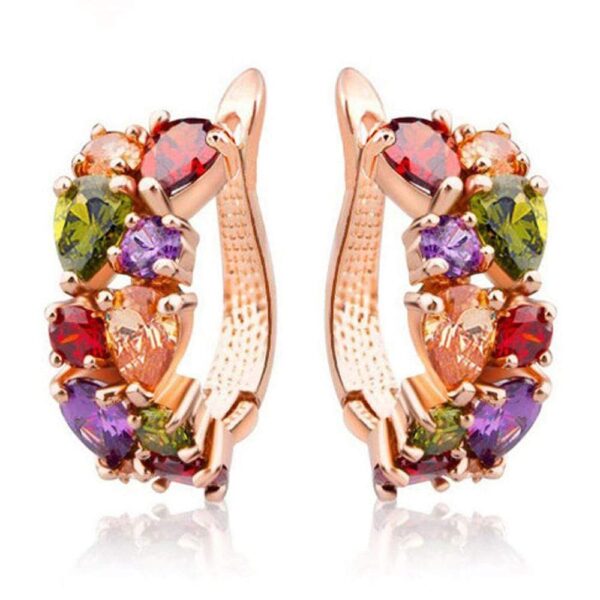 These huggie earrings are adorned with delicate multi-colored Crystals made with SWAROVSKI® elements. These wonderful earrings are made of high glossed 18K Rose Gold plated alloy. Let your jewelry shine as much as your smile with these shining earrings.