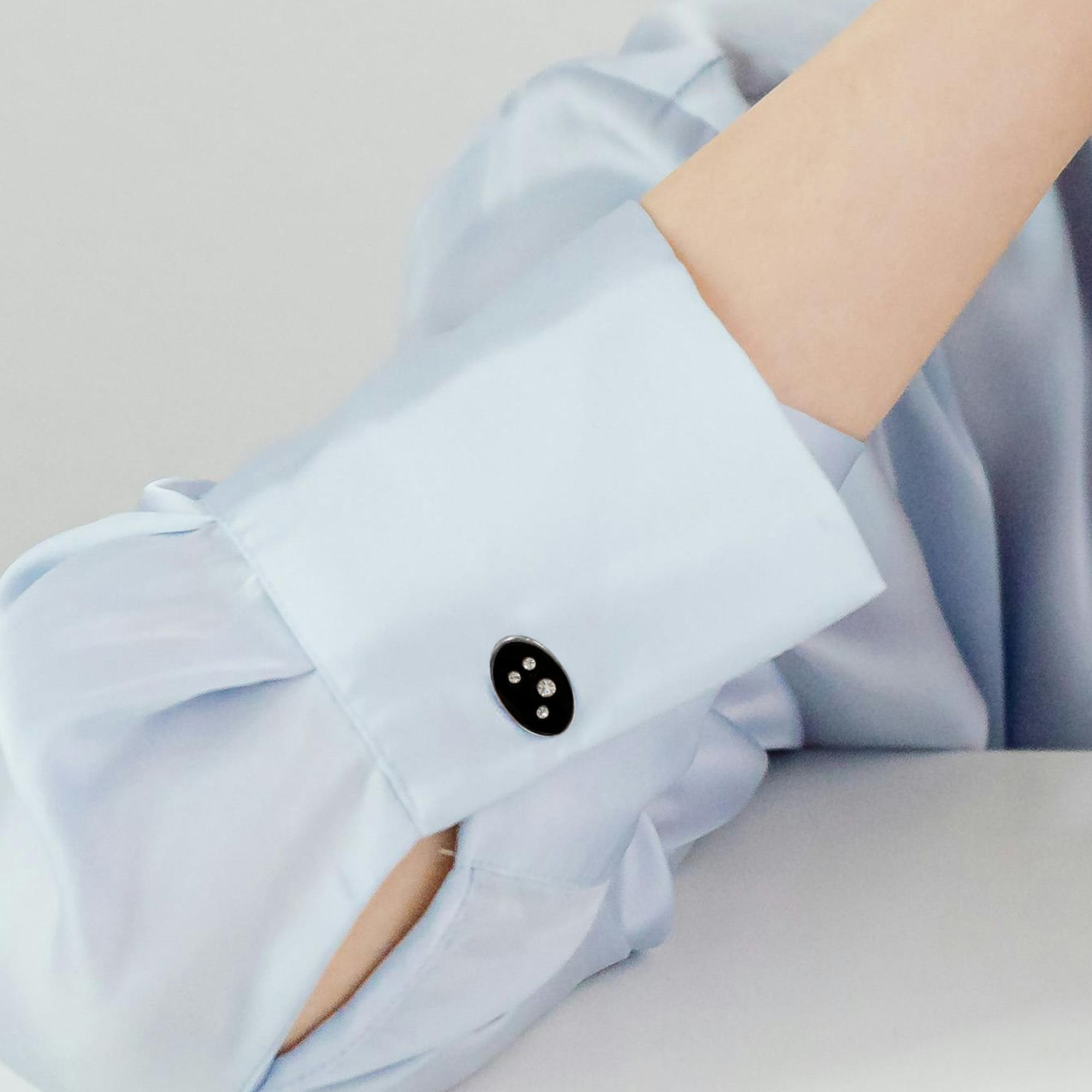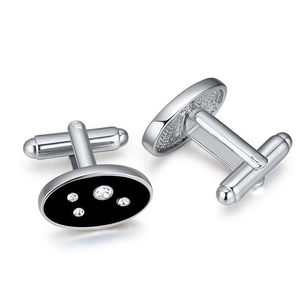 These oval shaped cufflinks add both a modern and stylish accent to your attire as it shine with Crystals from SWAROVSKI® It is equipped with a bullet back closure for a secure and comfortable wear.