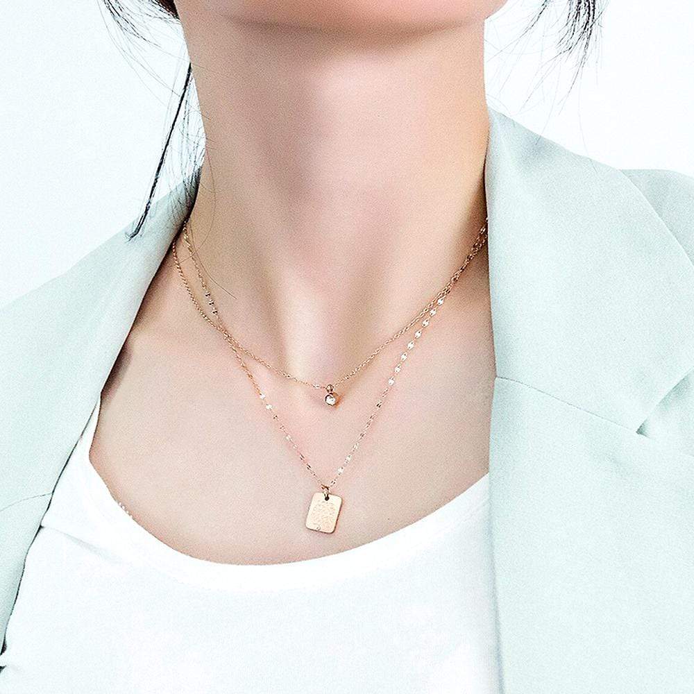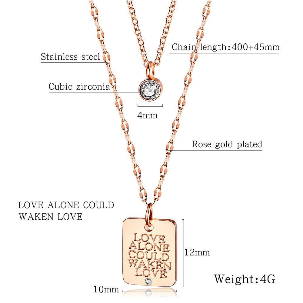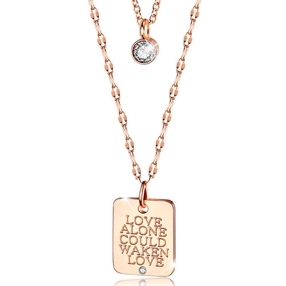 Multilayer 2 piece Necklace Love Awaken Engraved Pendant Rose Gold Layered Steel Jewellery