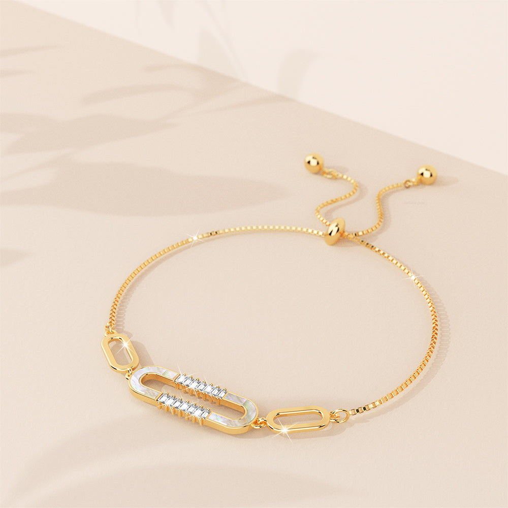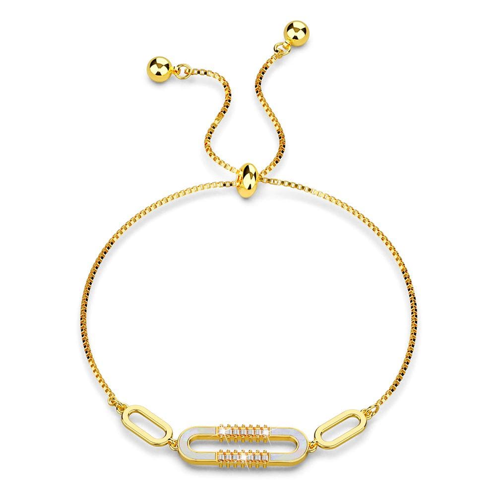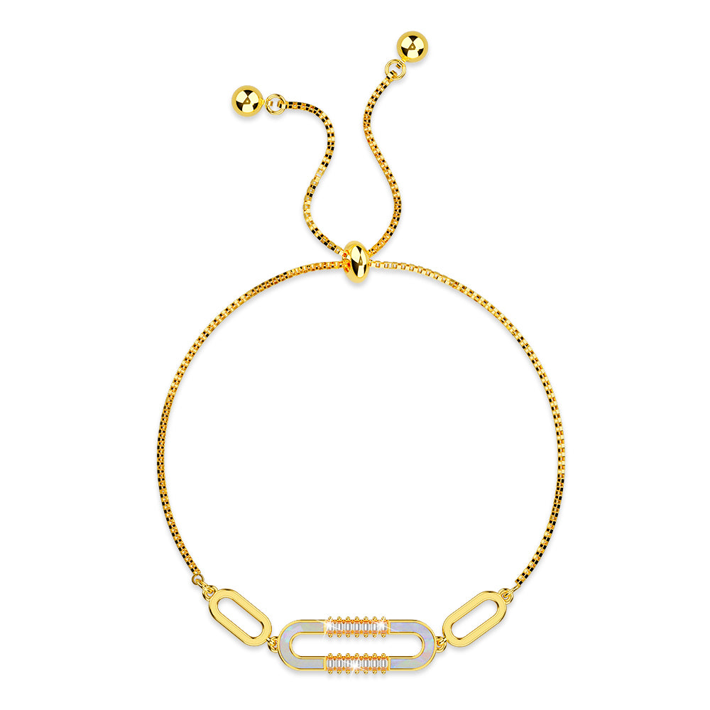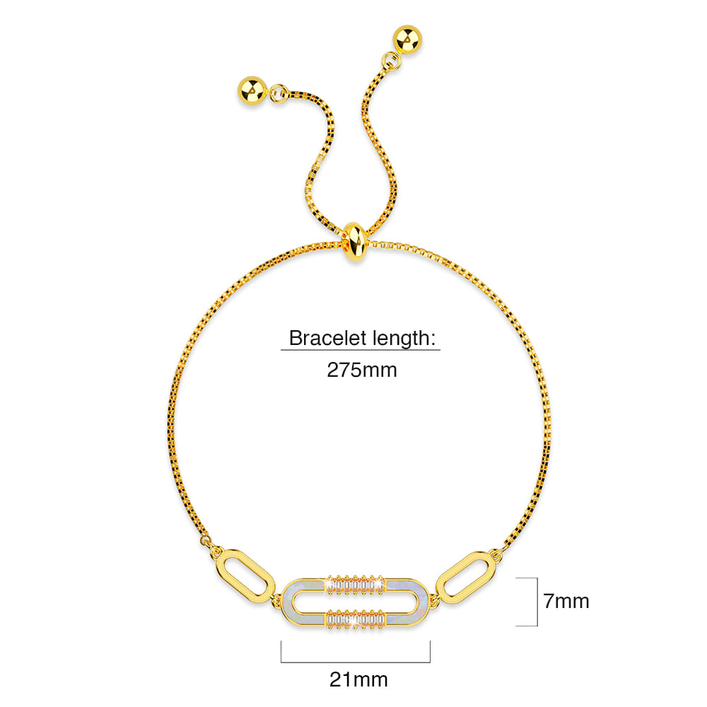 Give your arms a touch of luxury with the Possession Diamonelle on Mother of Pearl Shell Adjustable Slider Bracelet in Gold and White Gold. Catch the multi hue from the MOP shell oval motif linked by the fully adjustable slider chain bracelet well-crafted from 18ct gold or white gold layered over copper alloy. The Diamonelle cubic zirconia accents perfectly add the right sparkles to wrap the wrist in a flattering yet sophisticated way. It’s an ideal everyday bracelet for those who don’t want to spend too much on jewellery without losing elegance. Perfect for any occasion!