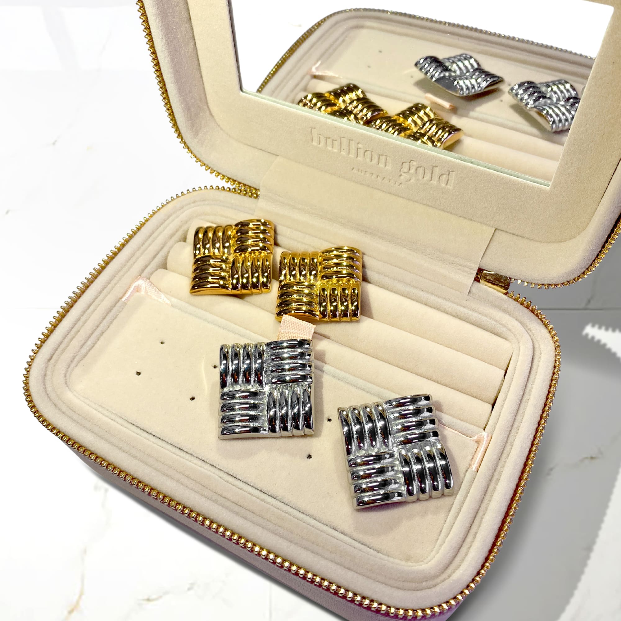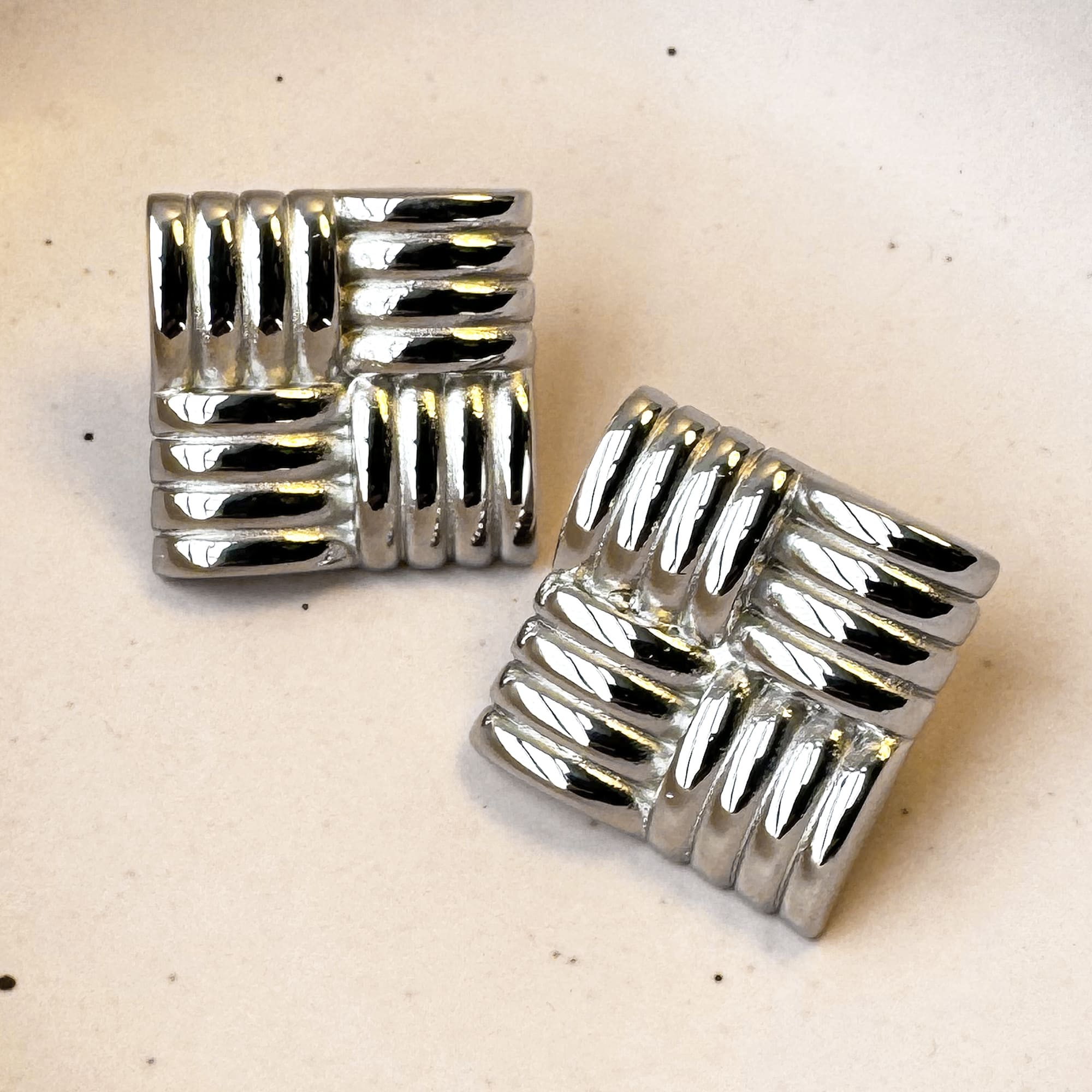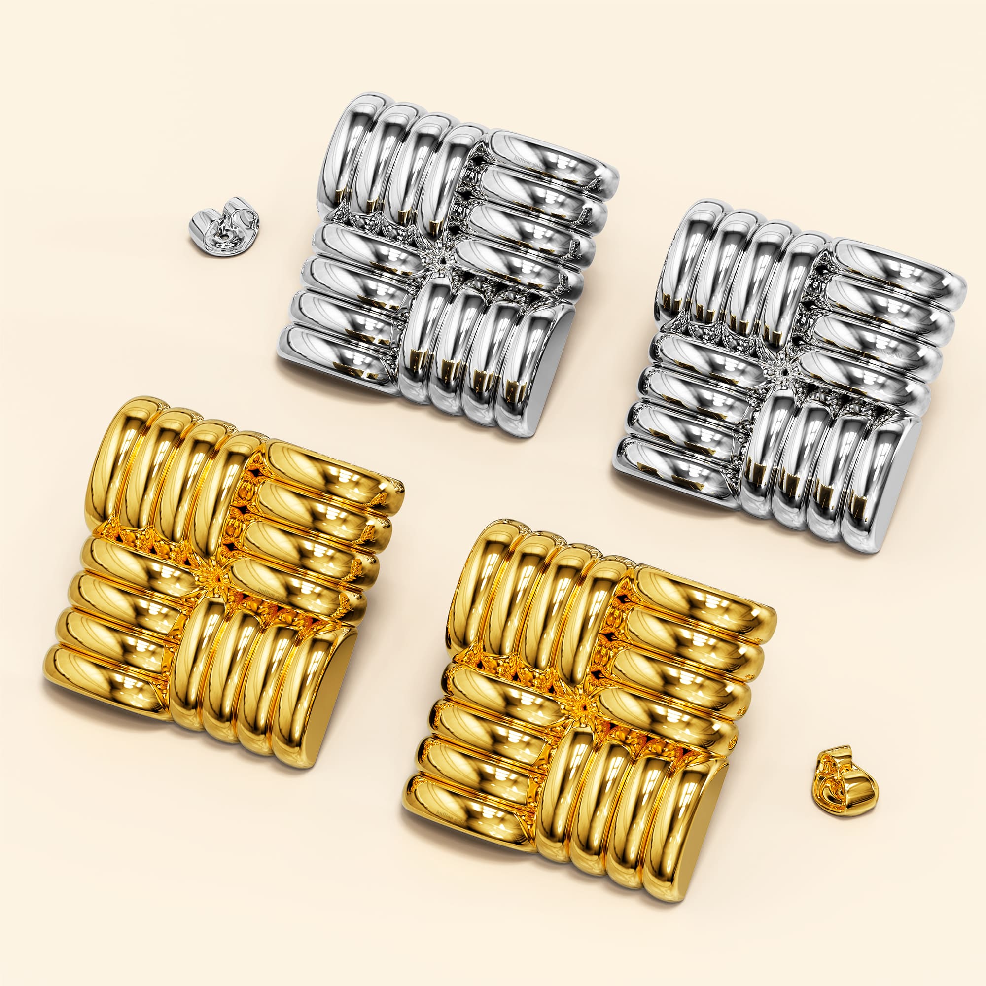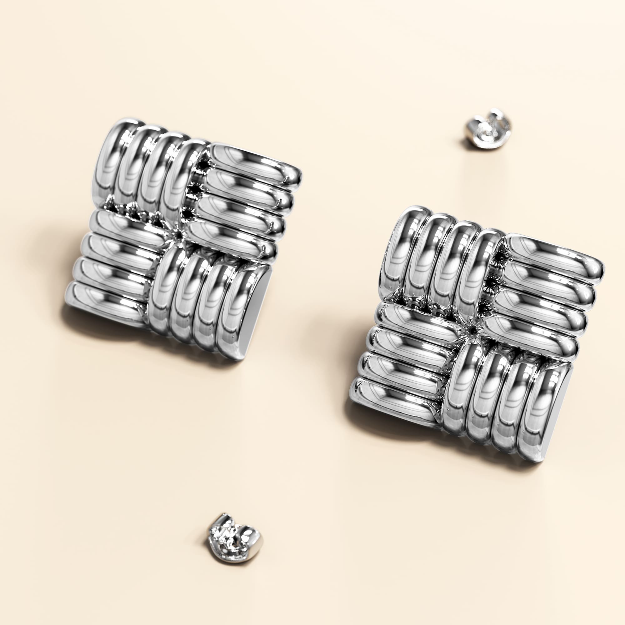 Ridged Square White Gold layered Stud Earrings