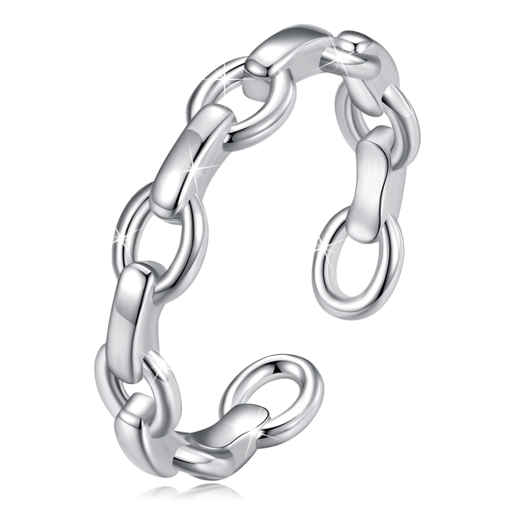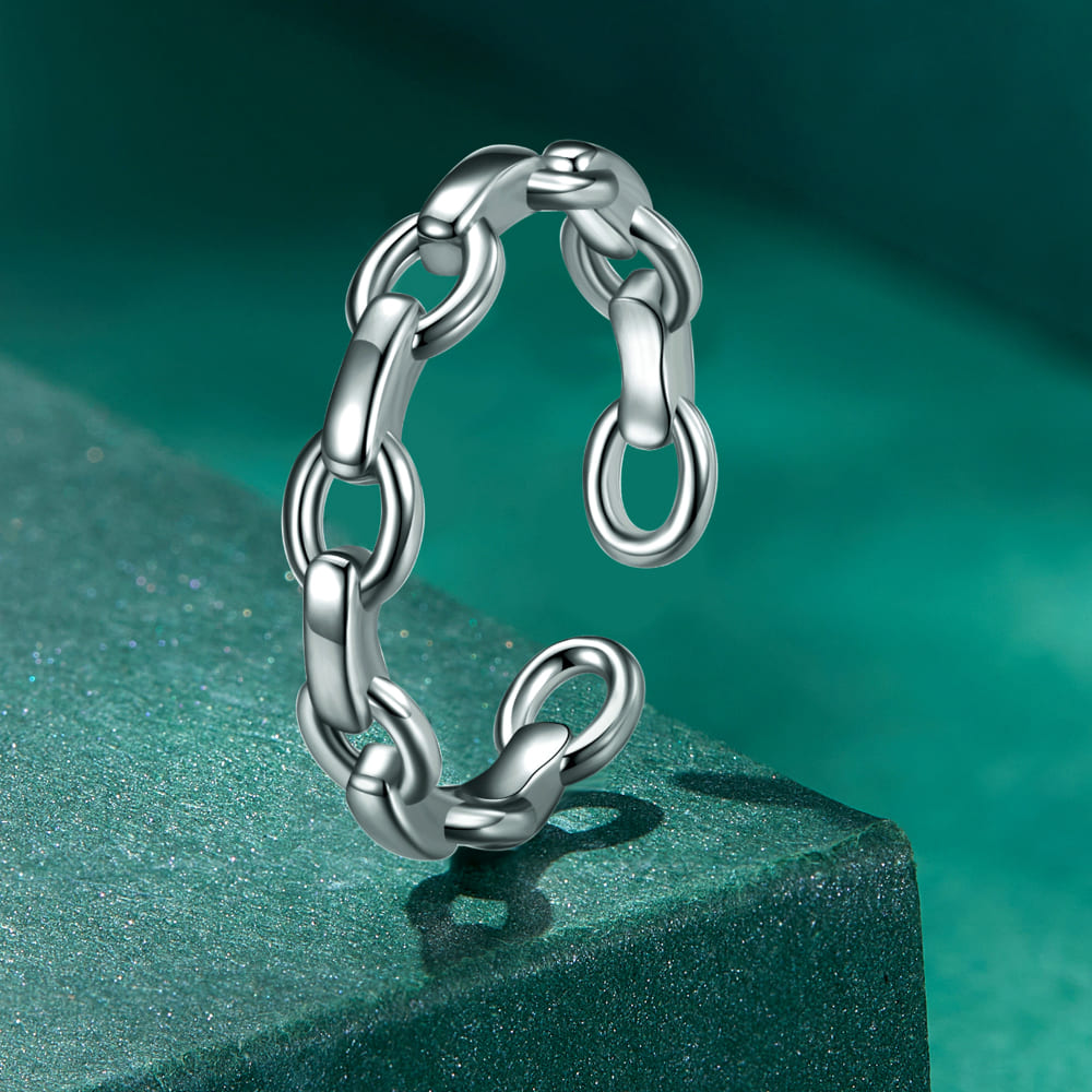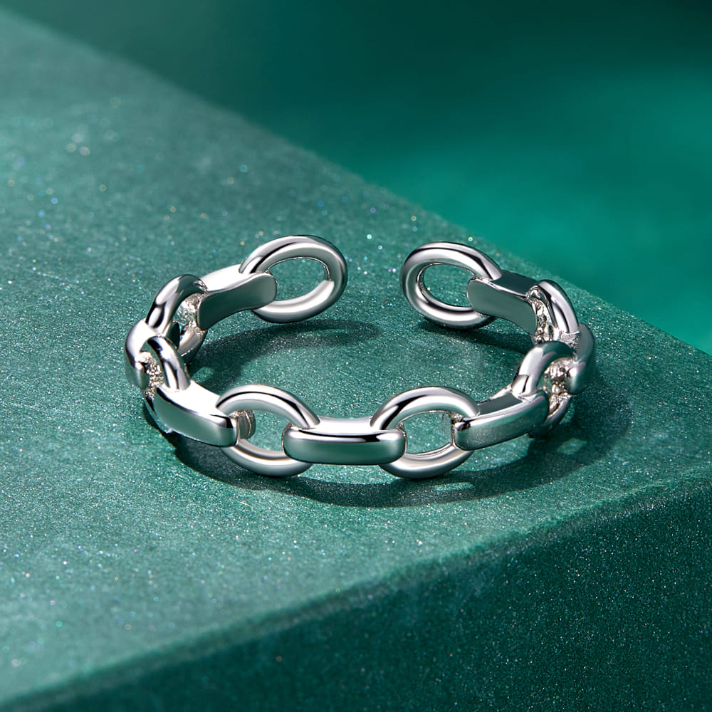 Solid 925 Signature Silver Chain Link Open Cut Ring