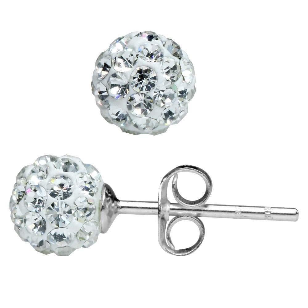 Solid 925 Sterling Silver 6mm Shamballa Studs Clear
