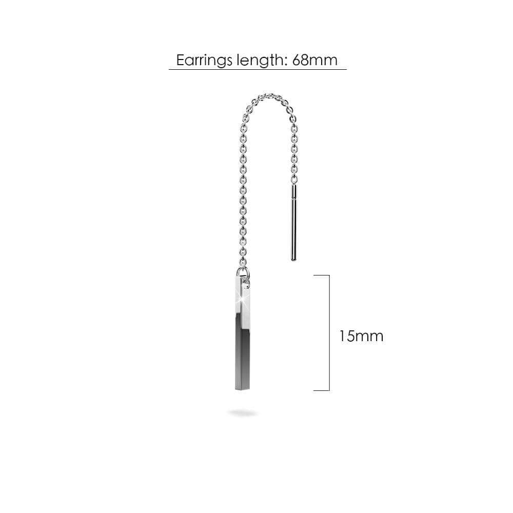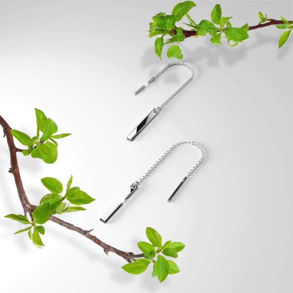 Solid 925 Sterling Silver Bar & Chain Sterling Silver Dangle Threader Earrings in Silver