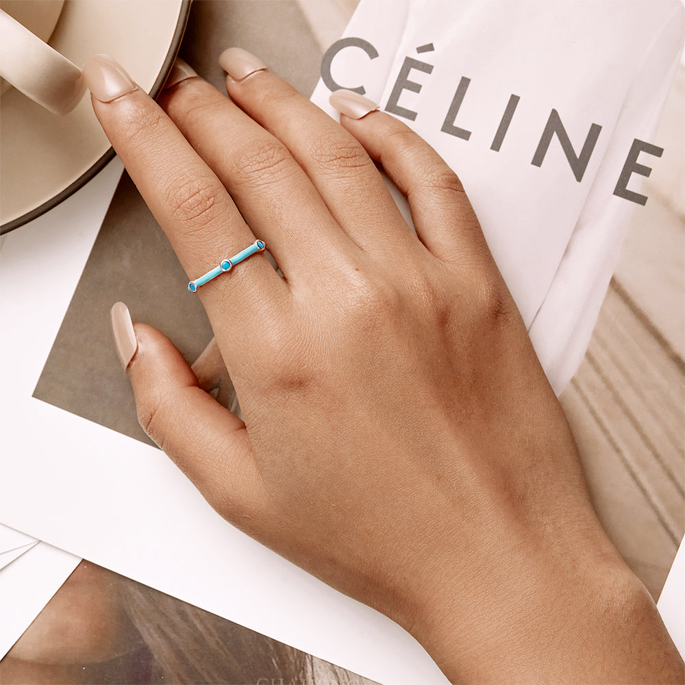 Curved Blue Caterpillar ring. A perfect touch for a girls’ day out. Pair it with Solid 925 Sterling Silver Blue Caterpillar C-Hoop Earrings. Trusted Australian Silver Jewellery Company.