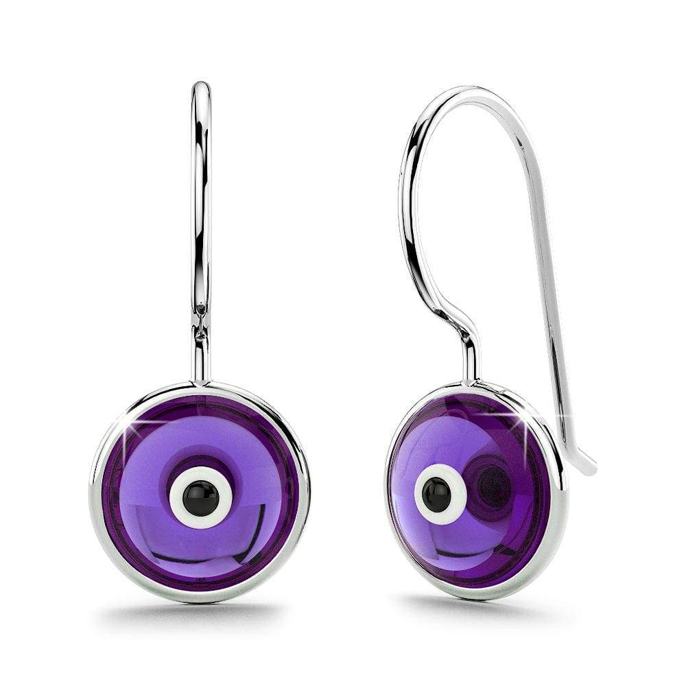 Solid 925 Sterling Silver Saucer Earrings Purple