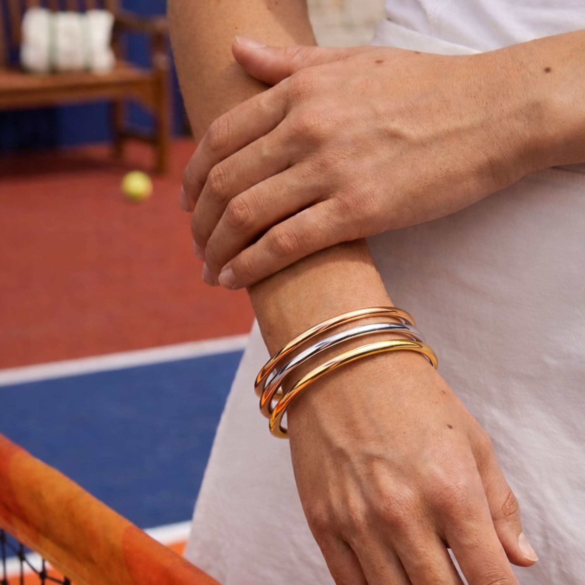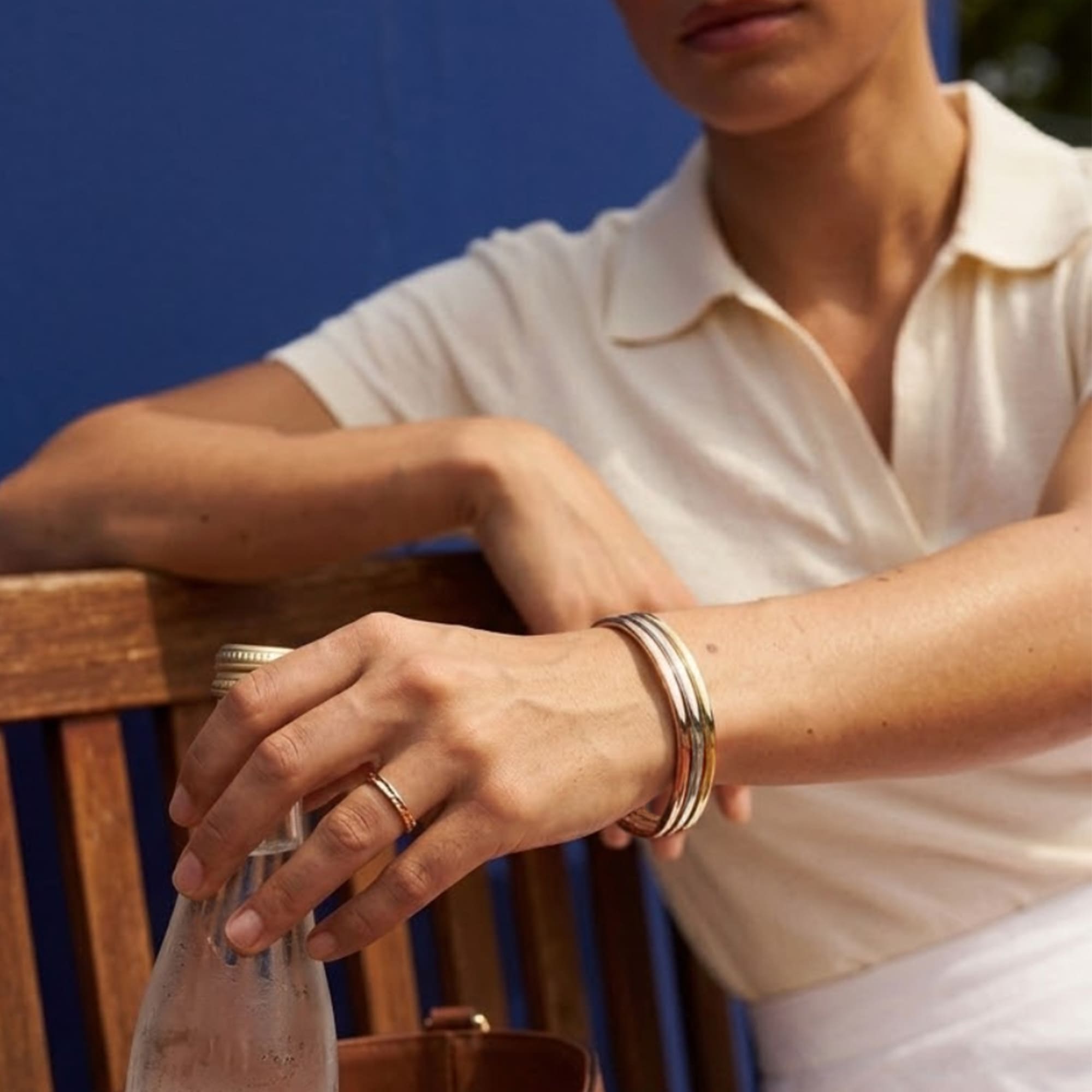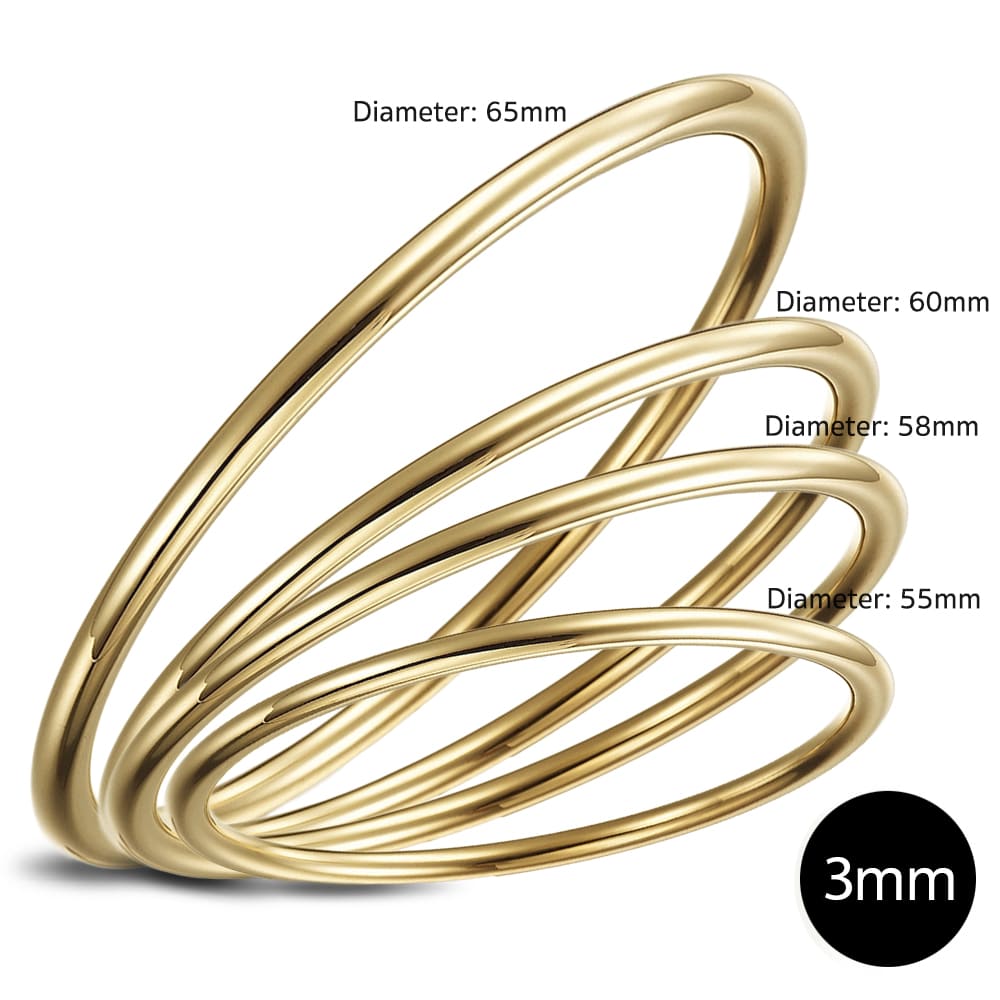 Stunning solid 3mm tube steel bangles, can be worn singularly or in multiple available in Rose Gold, White Gold or Gold with multiple sizes.