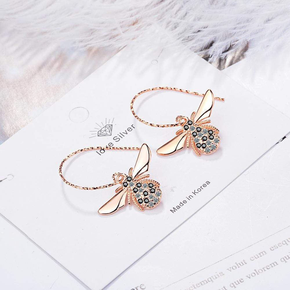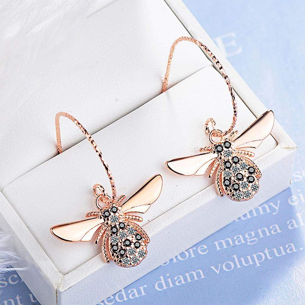Sparkling Beez B Bug Dangle Earrings in Rose Gold