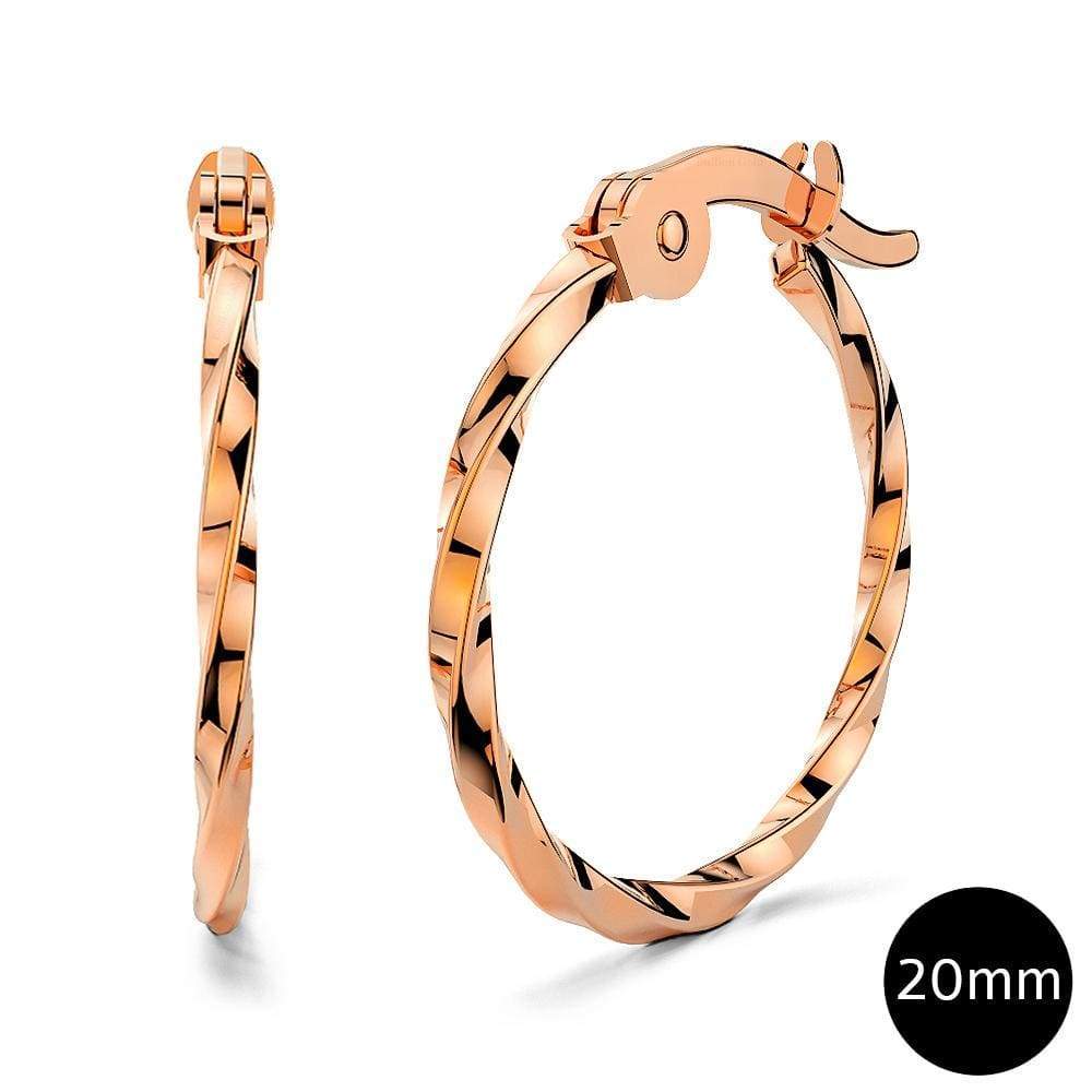 Wear this pair of effortlessly stylish hoop earrings that give you a modern and feminine look. This 20mm hoop boasts a twisted design secured with hinged post clasp. Made from 18ct rose gold layered stainless steel, this georgeous piece completes any outfit with a touch of sophistication.